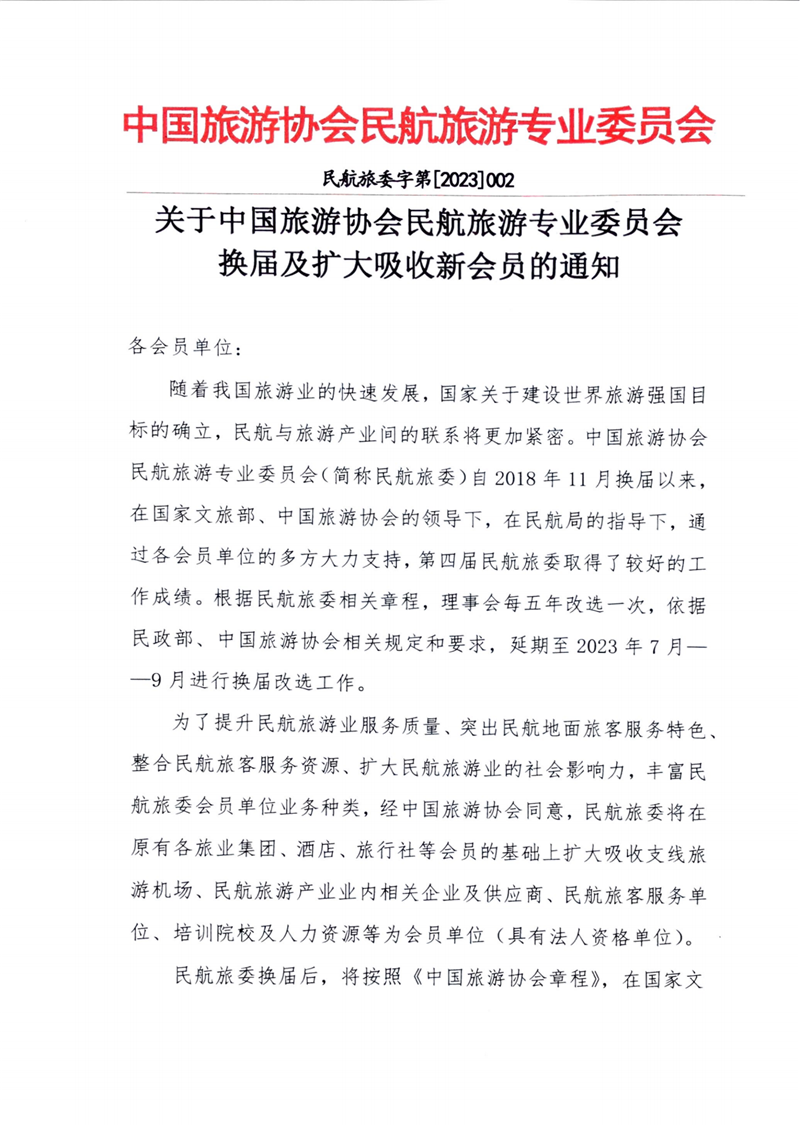 点击下载:关于中国旅游协会民航旅游专业委员会换届及扩大吸收新会员的通知.pdf